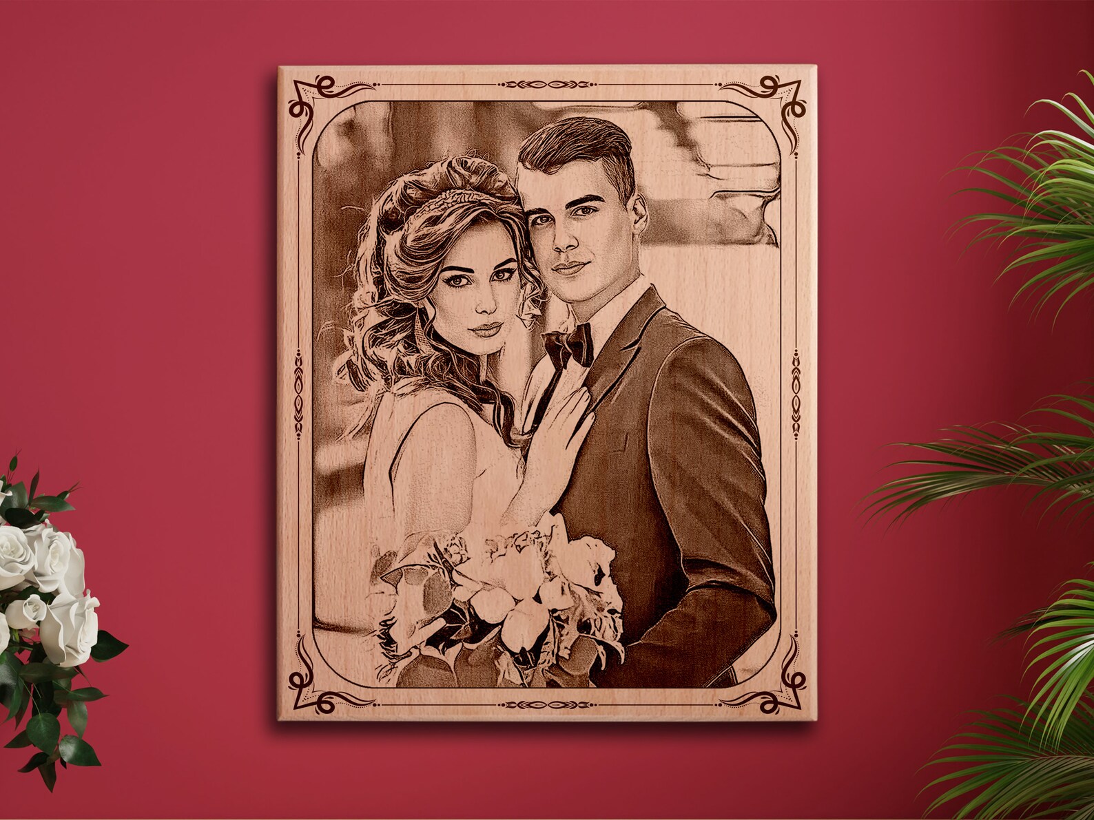 Гравійований портрет з фото на дереві — WoodArt Premium